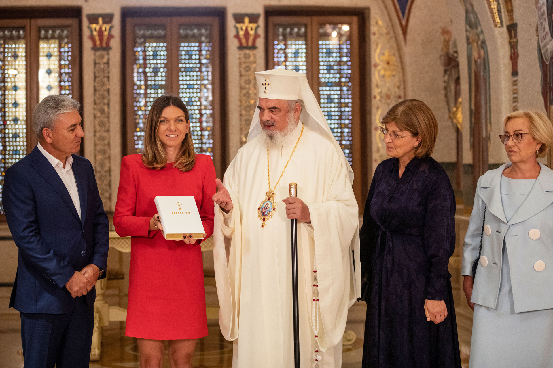 Pe lângă Crucea Patriarhală, Simona Halep a primit de la Patriarhul Daniel o Biblie „Centenar”. La eveniment au fost prezenți părinții Simonei Halep și alți apropiați ai campioanei.