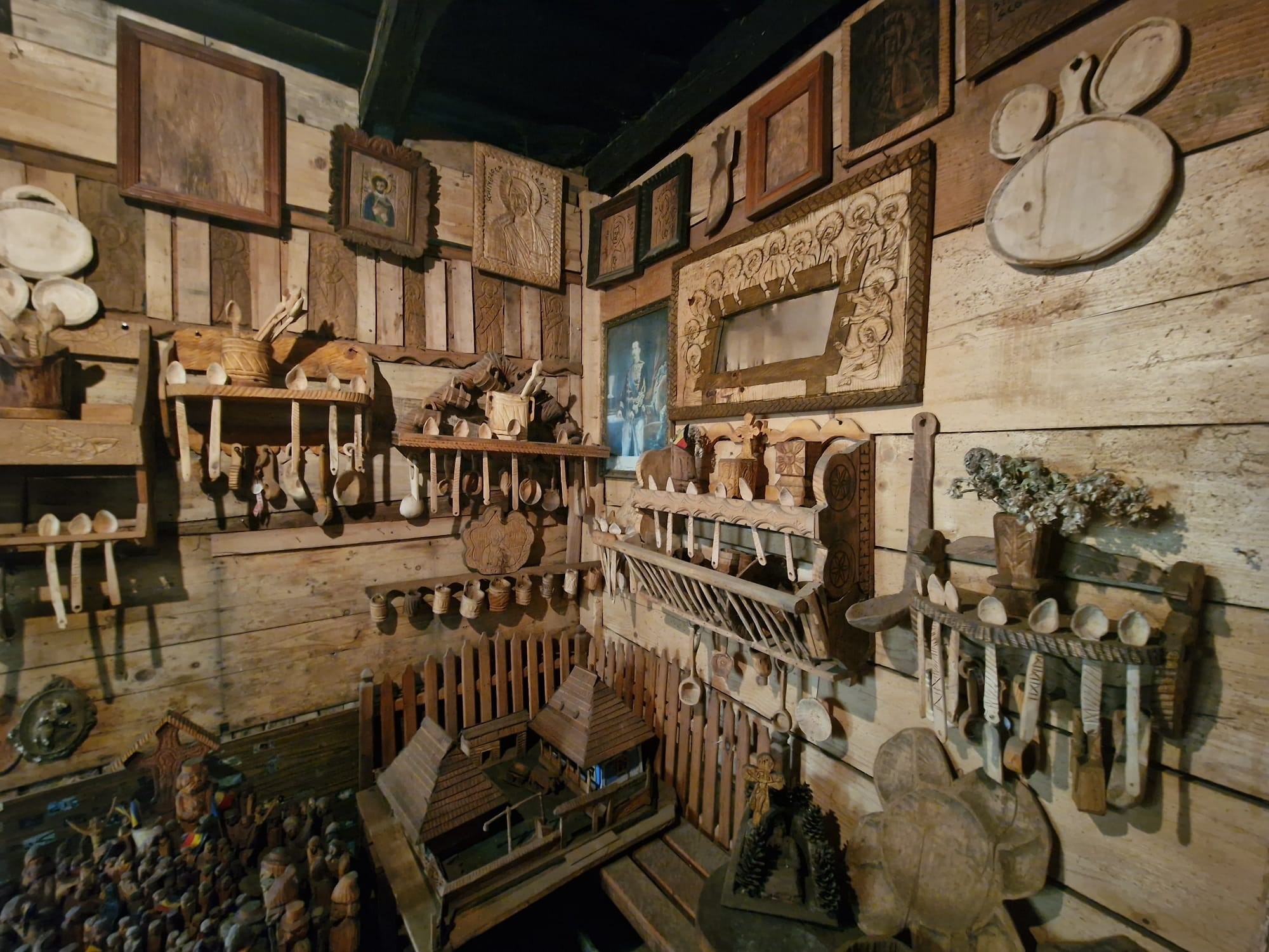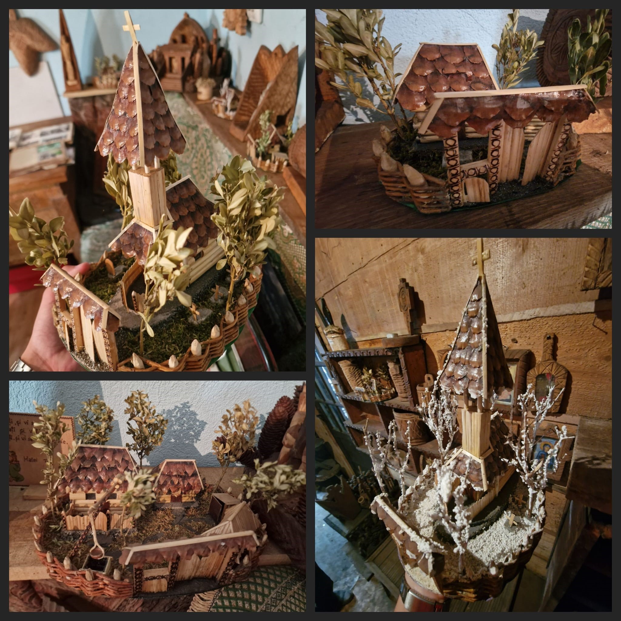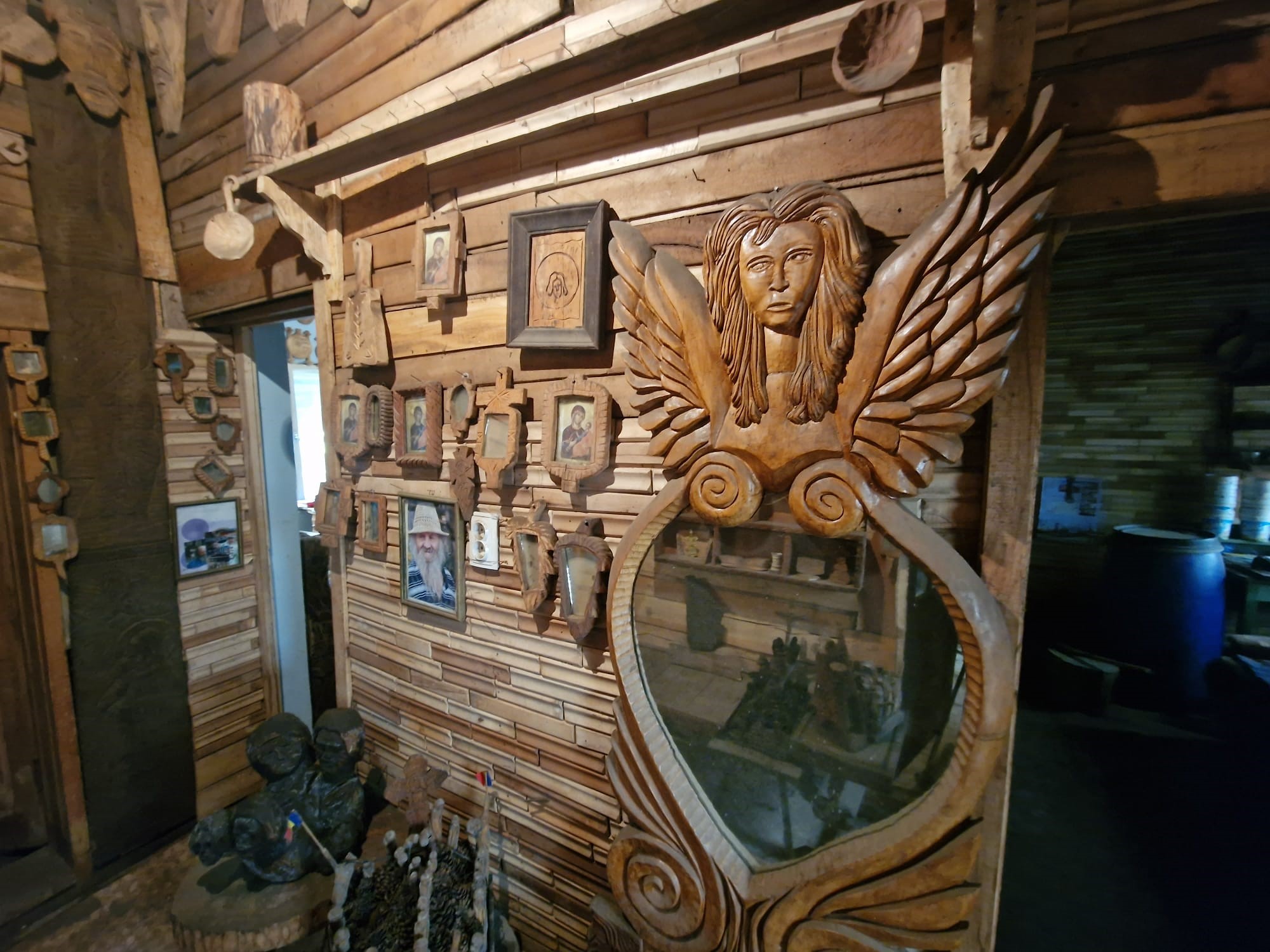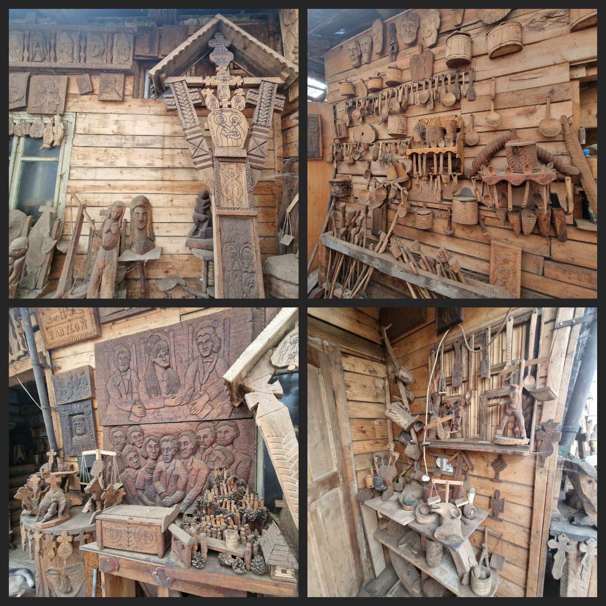 Cu toată modestia vă spun că am câteva amplasate și în mijlocul capitalei Budapesta căci acolo am găsit o plăcuță pe care scria numele unor oameni care au decedat în ceva război, iar acolo m-am gândit să amplasez o Ttroiță. Întotdeauna mi-a plăcut să inventez ceva. Mă relaxează foarte tare ceea ce fac și îmi oferă satisfacție. Pasiunea pentru această meserie m-a adus într-un punct în care să fiu cunoscut ca fiind singurul din țară care a obținut diploma de doctor în arta populară a lemnului și Valoarea Maramureșului în anul 2011. Cam tot ce vedeți aici, ori mi-a spus lemnul ce să fac, ori l-am sculptat eu, după mintea mea, după ideile mele.