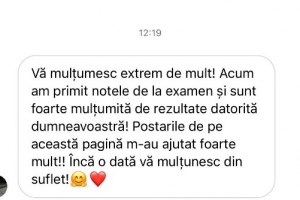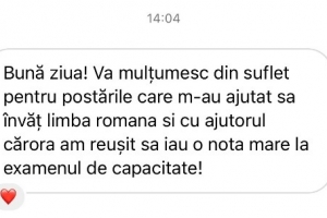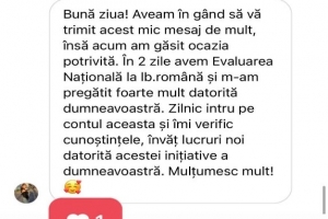 Lista proiectelor este deschisă cu informațiile și suportul pe care le-am oferit elevilor claselor a VIII-a și care a implicat o recapitulare amănunțită a materiei pentru Evaluarea Națională. Așadar, timp de două luni și jumătate (aprilie, mai și până la susținerea examenului) am dat start maratonului ,,Învățăm împreună pentru Evaluarea Națională” pe pagina oficială de Instagram (@vorbestecorectgramatical) și, astfel, i-am atras pe absolvenții claselor a VIII-a cu teste și lecții bine pregătite, explicate pe înțelesul tuturor. Încă de la începutul acestui maraton, am spus că, dacă voi primi un singur mesaj de mulțumire, înseamnă că mi-am atins scopul. Bineînțeles, nu a fost un singur mesaj, ci zeci de mesaje, unele primite chiar după susținerea examenului și altele după aflarea rezultatelor! Tot ce pot să afirm este că acest maraton a fost un real succes! Nu au mai contat orele muncite pentru pregătirea materialelor și a testelor, copiii (și nu numai) au fost foarte mulțumiți. Mi-aș putea dori o altă răsplată? Nu, categoric nu! ,,Mulțumesc”, aceasta este adevărata răsplată!
