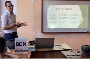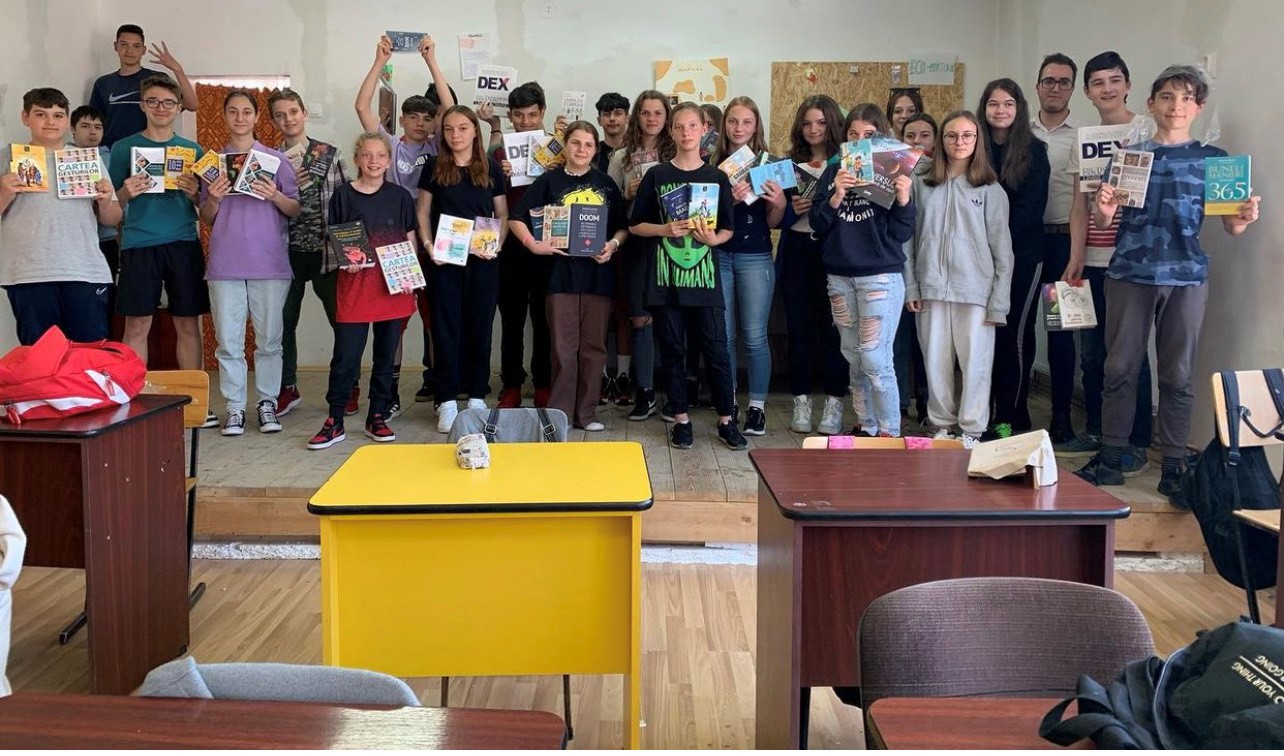 promovarea cititului și a limbii române în școli. Doamna director, Felicia Bodea, a răspuns afirmativ la această propunere, fără să stea pe gânduri, iar pe această cale doresc să-i mulțumesc! Întâlnirea cu elevii a fost foarte plăcută, am creat amintiri pe care nu le voi uita niciodată! Timp de o oră, copiii au aflat noutăți despre limba română, au descoperit care sunt beneficiile cititului și, la final, au învățat că multe cuvinte pe care ei le credeau corecte sunt, de fapt, greșite! Acest ultim exercițiu a creat o adevărată dezabatere! Totul în prezența DEX-ului și a DOOM-ului. Sfârșitul întâlnirii le-a adus tuturor copiilor cărți specifice vârstei lor, iar cei mai norocoși au primit, în urma tombolei pe care am organizat-o, DEX-uri, DOOM-uri și cele mai bune cărți de gramatică! MINUNAT TOTUL!”, povestește Alex.