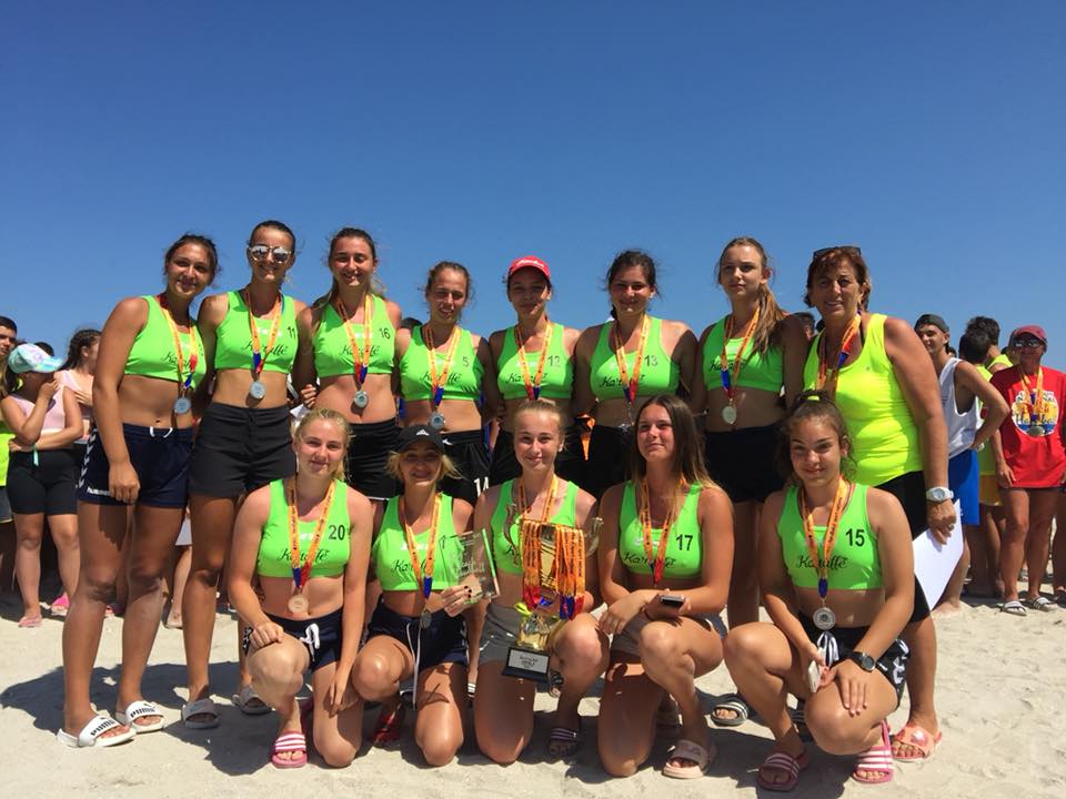 În competiția feminină disputată în sistem fiecare cu fiecare, așa cum era de așteptat, principala adversară a băimărencelor a fost CSȘ 1 Constanța, care a și câștigat titlul. Din păcate Minaur a pierdut cu 0-2 în fața fetelor de pe litoral, care au avantajul că se pot antrena tot sezonul, având plaja la dispoziție. În rest, fetele noastre au câștigat categoric cu 2-0 meciurile cu CSȘ Sf. Gheorghe, CSȘ Tulcea și HCM Craiova, singura partidă care le-a mai pus mici probleme fiind cea cu CSȘ Viitorul Cluj, pe care au câștigat-o la loviturile de departajare (shoot out), cu 2-1. Așadar, Minaur Baia Mare devine pentru al doilea an consecutiv vicecampioană națională la junioare A, performanță remarcabilă în condițiile în care aceste fete joacă handbal pe nisip o singură dată pe an, cu ocazia Baia Mare Beach Handball Challenge, neavând condiții de antrenament sau de pregătire specifică acestui sport. Echipa vicecampioană, condusă de pe margine de antrenoarea Ioana Marta, le are în componență pe Marina Dumanska, Petruța Argyelan, Ann Ivanenco, Marinela Pricop, Alexandra Zholobovich, Claudia Siman, Diana Șamanț, Alew Abdulgani, Ekaterina Fenaneți, Crina Asaftei, Adela Bochiș și Alexandra Gonța. La categoria premii speciale, Marina Dumanska a fost declarată cel mai bun portar al turneului.