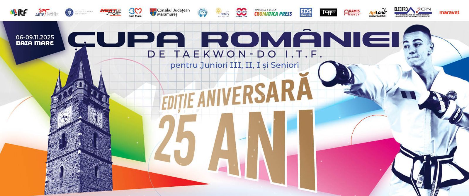 În perioada 6–9 noiembrie, Sala Polivalentă „Lascăr Pană” din Baia Mare găzduiește din nou una dintre cele mai importante competiții din calendarul Federației Române de Taekwon-do ITF – Cupa României – pentru Juniori III, II, I și Seniori. Evenimentul reunește sportivi, antrenori și arbitri din întreaga țară, într-un spectacol al performanței și al disciplinei.
