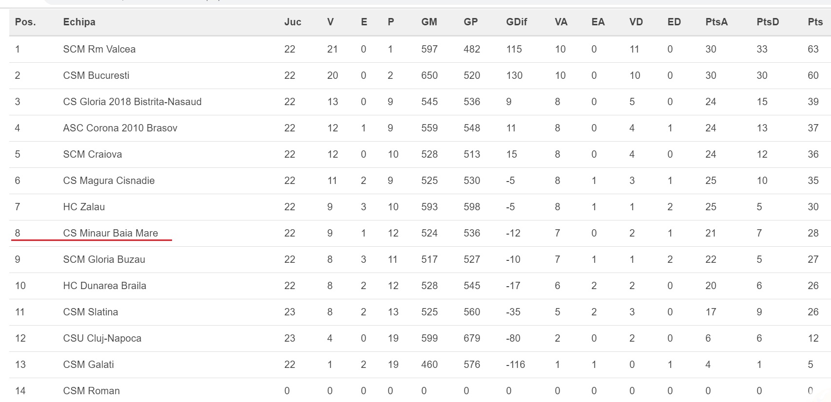 Repriza secundă a fost câștigată de băimărence datorită ultimelor 3 goluri din finalul meciului (12-13), nu înainte ca brașovencele să pună 10 goluri avans la general (28-18, min. 56). Scor final 28-21 și Minaur, chiar dacă rămâne pe locul 8, se află la doar 2 puncte de zona ce duce la baraj, mai ales după ce Gloria Buzău a bătut-o surprinzător pe campioana CSM București. E drept, pentru a ajunge în această situație, Slatina trebuie să învingă SC Rm Vâlcea în deplasare, ceea ce pare mai mult decât imposibil. Dar după „făcuta” celor de la CSM, nimic nu ne mai poate surprinde.