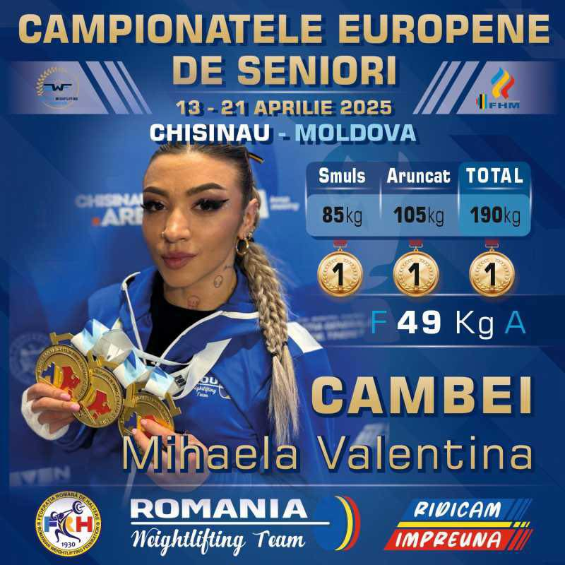 Mihaela Cambei, la doar 22 de ani, urcă pe culmile gloriei sportive, cucerind trei medalii de AUR la Campionatele Europene de la Chișinău. O demonstrație uluitoare de talent, voință și caracter, care ne-a tăiat respirația. De trei ori campioană europeană, un vis transformat în realitate prin muncă, sacrificiu și o credință neînfricată.
