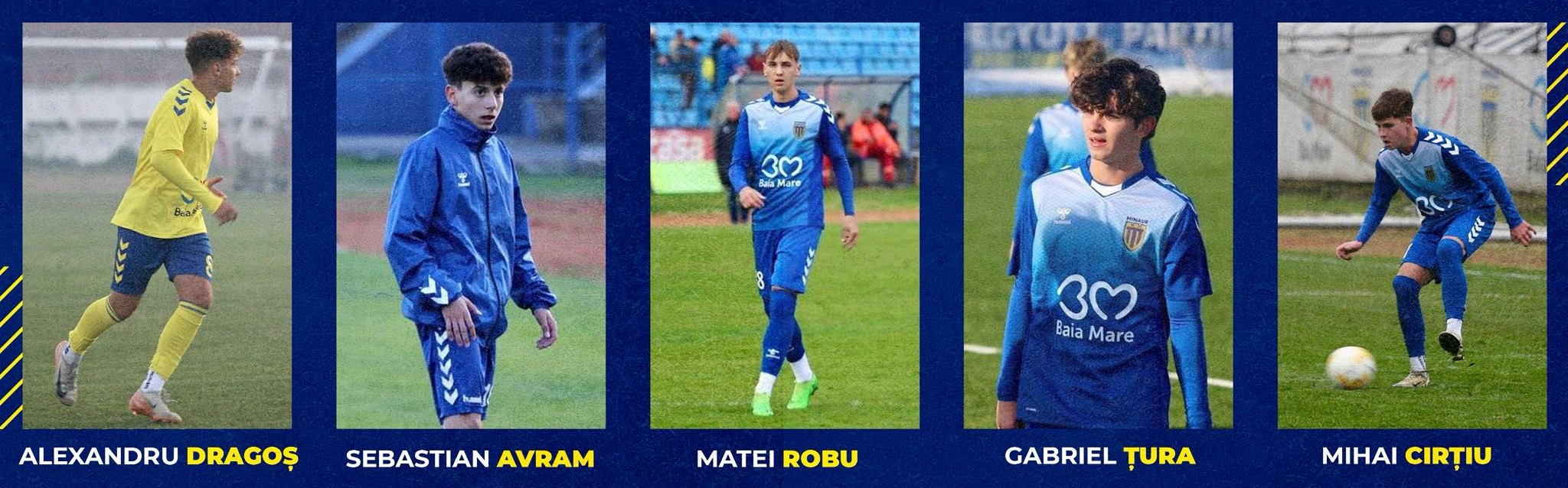 Cinci jucători de la Academia de Fotbal Minerul Baia Mare au debutat la echipa de Liga 3 CS Minaur în prima parte a sezonului. Este vorba despre Alexandru Dragoș, Sebastian Avram, Matei Robu, Gabriel Tura și Mihai Cîrțiu.