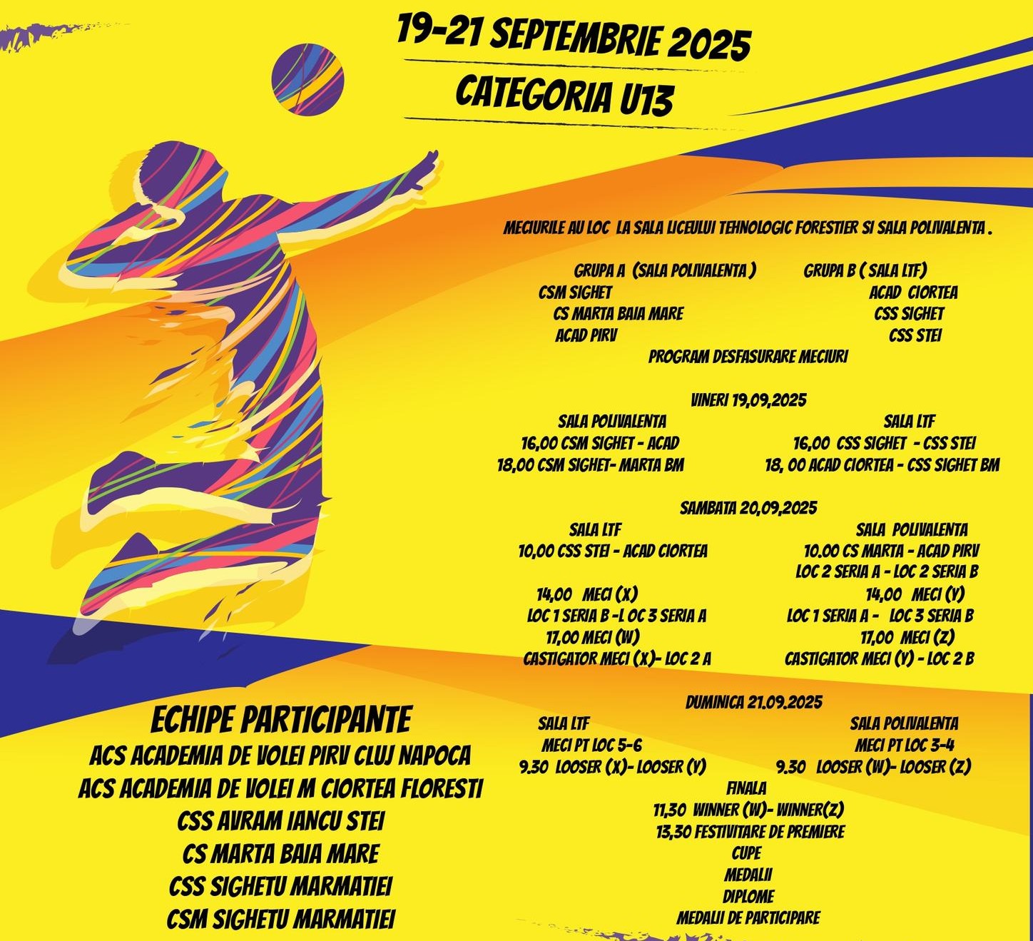 De astăzi până duminică se desfășoară Cupa CSM Sighetu Marmației la minivolei, o competiție dedicată fetelor, categoria U13. Participă șase echipe împărțite în două grupe: CSM Sighet, CS Marta Baia Mare și Academia de volei ”Pîrv” Cluj-Napoca, în grupa A, respectiv Academia de volei ”M. Ciortea” Florești, CSS Sighet și CSS ”Avram Iancu” Stei, în grupa B.