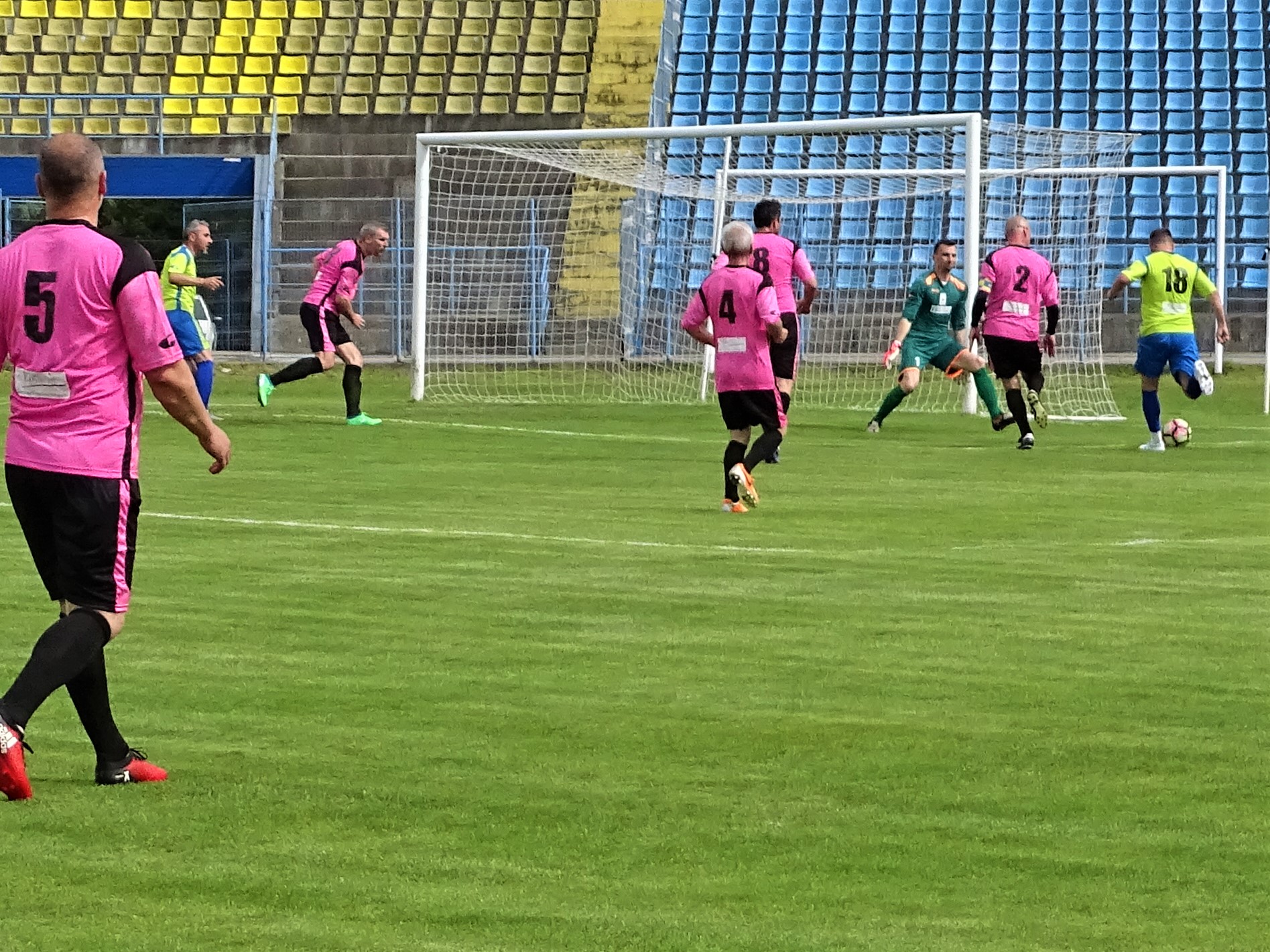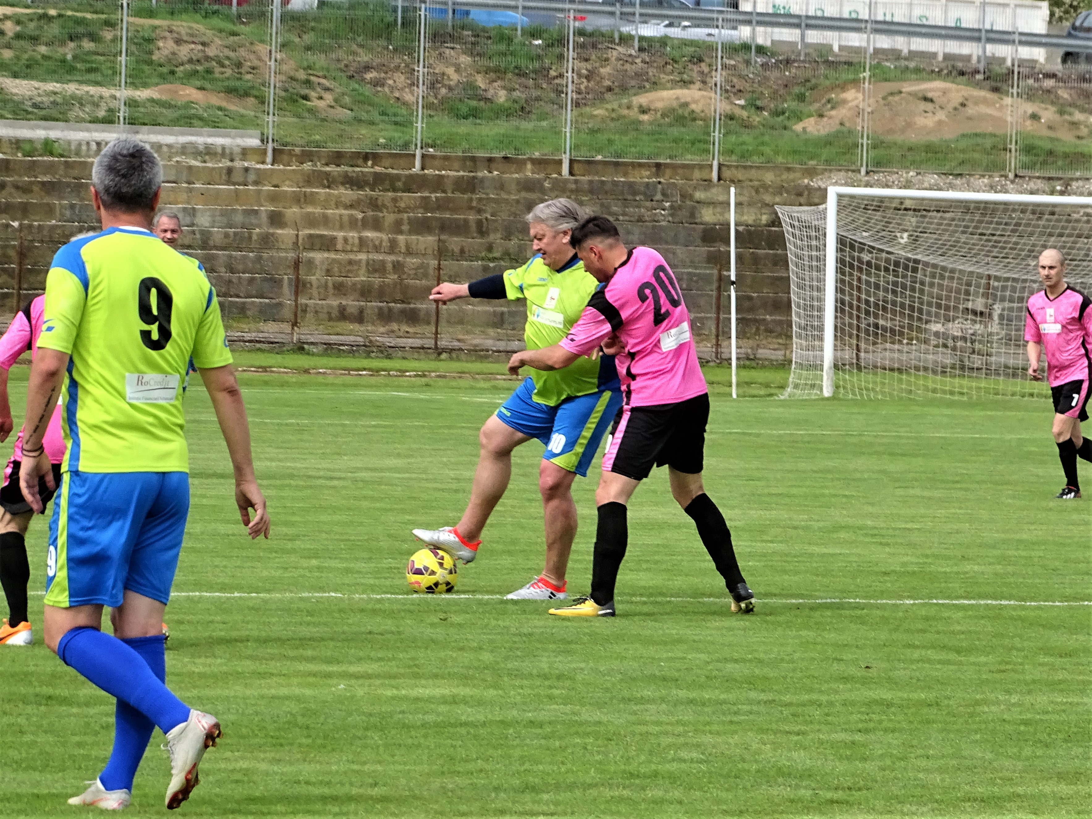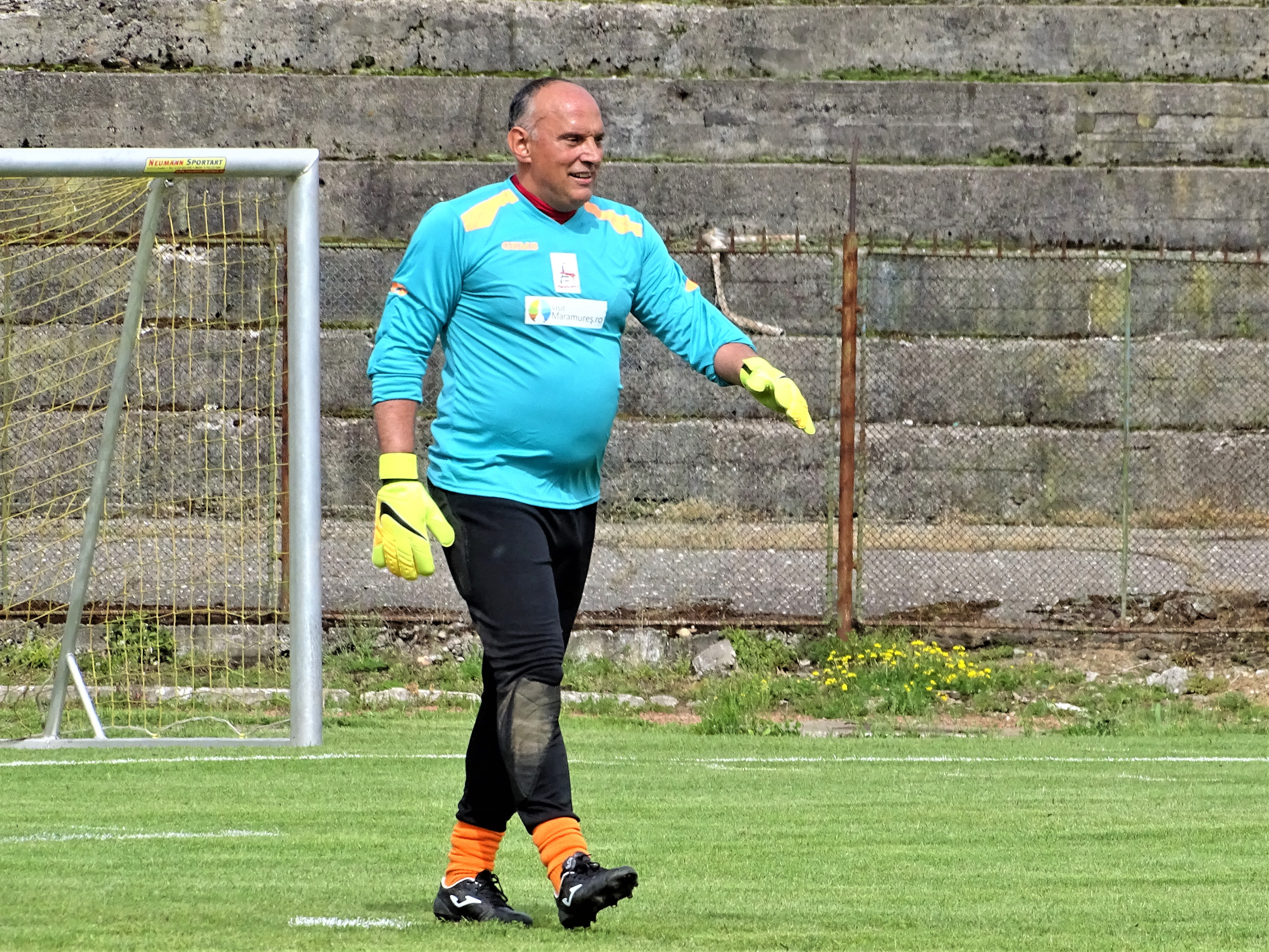 Prima parte a meciului s-a jucat comasat în zona centrală a terenului, puțini fiind cei dispuși să sprinteze spre poarta adversă. Maramureșenii au dominat totuși și au și deschis scorul, Dănuț Sabou executându-l pe Florin Prunea cu un lob care în zilele de glorie nu i-ar fi pus probleme (foto sus). A venit apoi reușita ”arabului” Ciprian Danciu, înaintea pauzei de hidratare (numai cu apă). Apoi Petrică Negrea a marcat golul de 3-0, scor consemnat la pauză. Pe culoarele dinspre vestiare arbitrul Zoltan Szekely junior a promis că lucrurile nu vor rămâne așa, având el grijă să vadă un penalty în favoarea Legendelor. Zis și făcut. La scurt timp după reluare, oaspeții au ajuns în careul advers și drept pedeapsă că nu au fost lăsați să marcheze au primit cadou o lovitură de la 11 metri. A executat eternul Dănuț Lupu, care, de altfel, datorită formei fizice (la propriu) de invidiat, a fost printre singurii fotbaliști cu „greutate” care au dus meciul până la capăt. La 3-1 Legendele au prins aripi și au redus din handicap prin Rică Neaga, care a driblat tot ce a avut în față (e drept, destul de puțin), l-a culcat și pe Bota și a intrat cu tot cu minge în poartă. Tot el a făcut și faza golului egalizator, când a demonstrat că a învățat ce înseamnă altruism și i-a pasat lui Iulian Mihăilă, care a marcat nestingherit.
