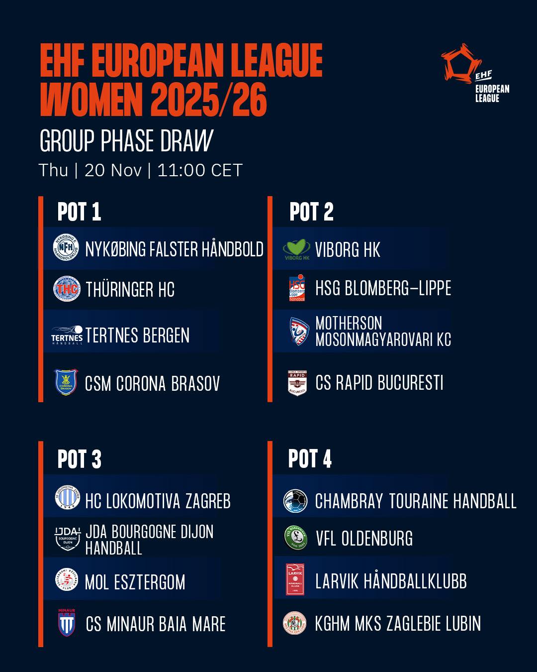 Mâine, la ora 12:00, are loc tragerea la sorți a grupelor din EHF European League. Sunt calificate 16 echipe și sunt patru urne valorice. CS Minaur e în urna a treia. Alte două echipe românești sunt calificate în această fază a competiției: Corona Brașov (urna 1) și Rapid București (urna 2).