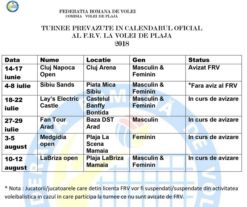 Organizatorii Baia Mare Beach Handball Challenge 2018 (un eveniment realizat din resurse private, în colaborare cu autoritatea locală) au făcut din timp demersuri pentru a coopta FRV ca partener al competiției organizate la Baia Mare, una care nu se dorește a fi oficială, ci mai mult una cu caracter deschis, demonstrativ, având ca scop promovarea acestui sport. Neprimind un răspuns la propunerea de colaborare, s-a continuat organizarea turneului demonstrativ, față de care s-au arătat interesați peste 50 de sportivi din întreaga țară, amatori și profesioniști. Însă, cu doar câteva zile înainte de eveniment, jucătorii legitimați au bătut în retragere. Motivul? Acea notă de subsol, care se pare că este valabilă și în cazul turneelor de promovare.