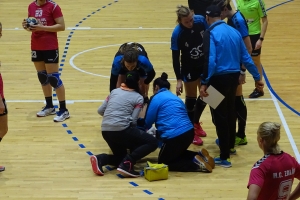 Prima repriză a meciului a fost ușor dominată de oaspete, zălăuancele fiind permanent în față cu unul, două goluri. Minaur nu a condus nici măcar o dată, însă a fost tot timpul în joc. Shteriova a marcat de 4 ori în primele 20 de minute, după care a intrat în scenă și Rysankova. Enache și mai apoi Medvedova ne-au ținut în meci, reușind câteva intervenții importante. La 10-12 (min. 27), oaspetele ratează de două ori desprinderea decisivă și izbutim să intrăm la pauză cu un singur gol în urmă (11-12).