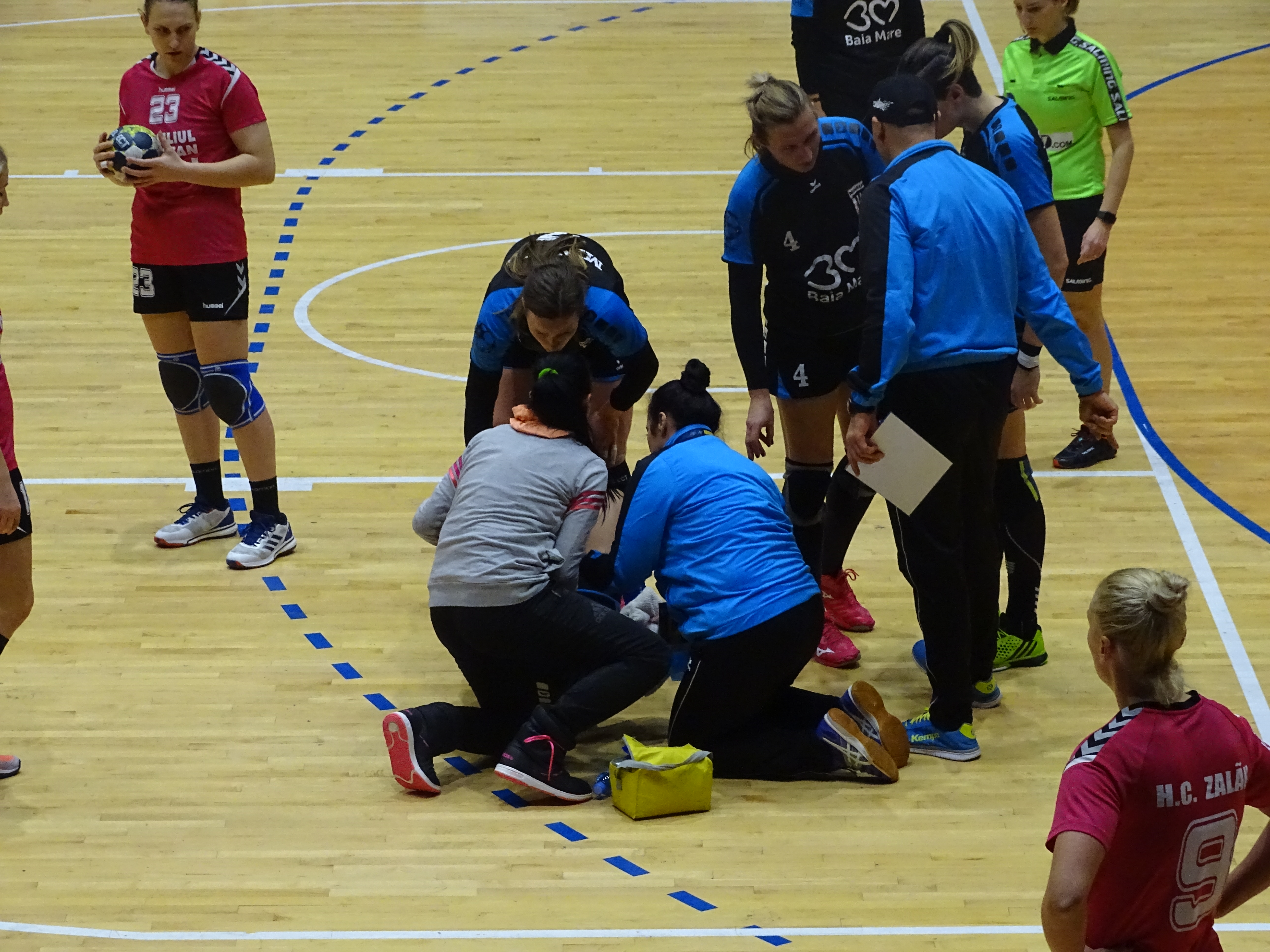 Începem repriza secundă cu un om în minus, Shteriova fiind eliminată în ultimele secunde ale primei părți. Zalăul se desprinde periculos la 11-14 (min. 34), însă apoi ne apărăm bine, marcăm de 5 ori consecutiv de pe intermediar, prin Lisewska (3) și Rysankova (2) (16-14, min. 41) și trecem pentru prima dată la conducere. Tabela de marcaj mai consemnează un singur egal (16-16, min. 44), după care elevele lui Buceschi nu mai cedează și pun chiar 5 goluri avans (23-18, min. 55), Rysankova și Burlacenko fiind cele care și-au asumat în mai multe rânduri inițiativa. Asta în ciuda agresivităților inutile a zălăuancelor, toate în zona capului, din pricina cărora Stheriova, Burlacenko și Orșivschi au avut nevoie de intervenția medicilor. Orșivschi chiar a sângerat la marginea terenului timp de mai multe minute. La adăpostul avantajului de 5 goluri, băimărencele au temporizat jocul, Buceschi a cerut time-out și chiar dacă au mai ratat de 2 ori, au câștigat în cele din urmă cu 23-21.