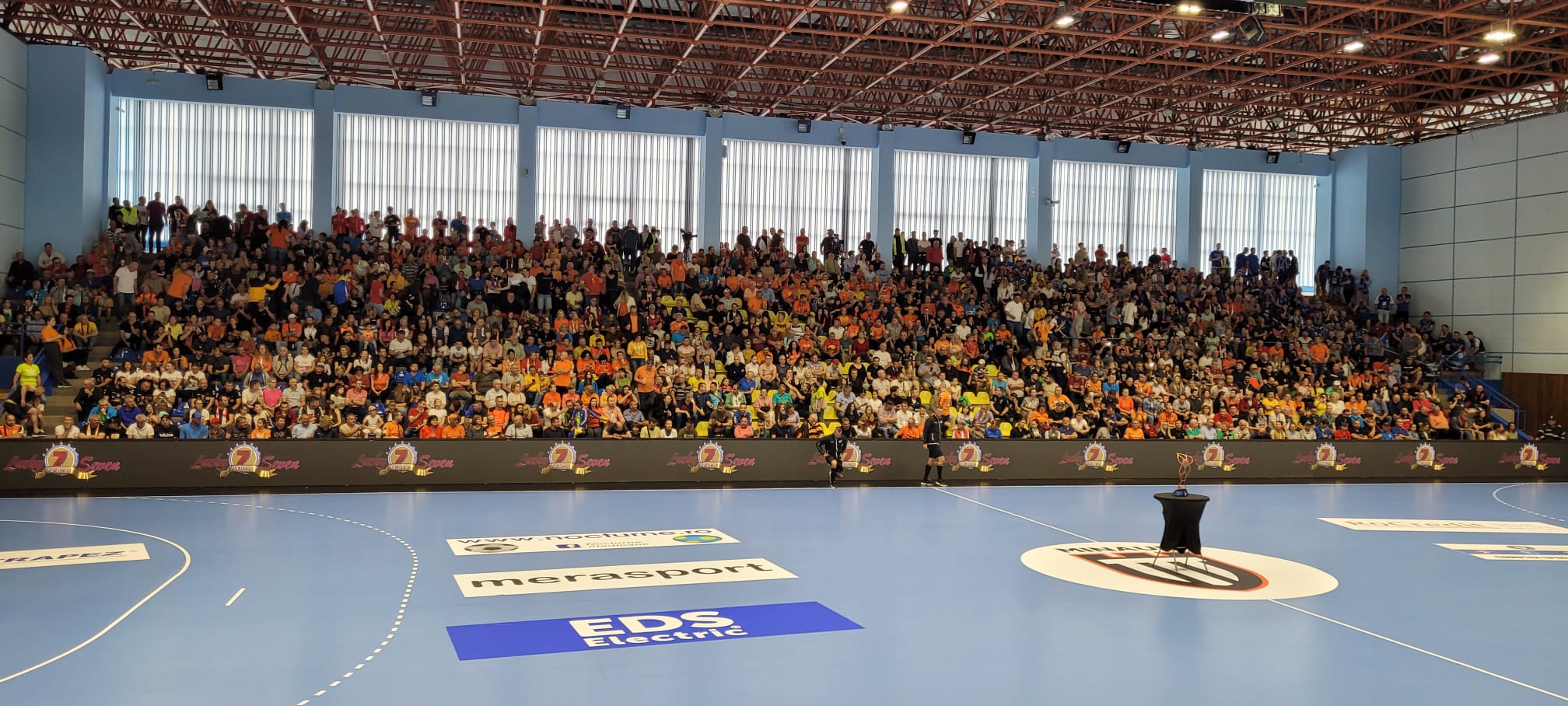 În sala polivalentă „Lascăr Pană” din Baia Mare, primul gol s-a marcat abia după 5 minute de joc și l-au reușit norvegienii, prin Haugseng.