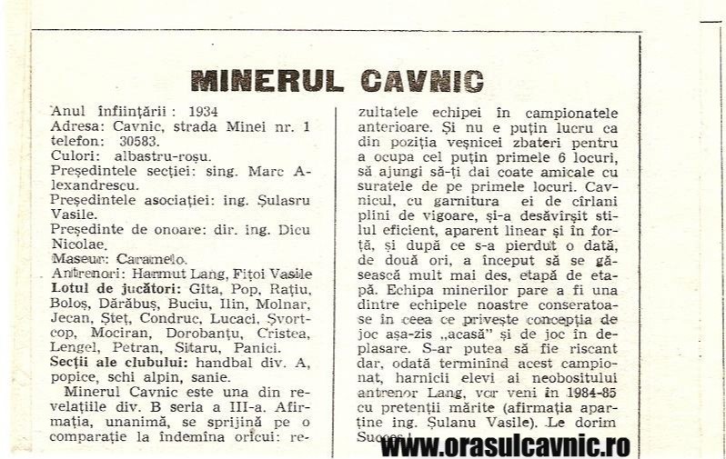 Minerul Cavnic, o echipă îndrăgită de maramureșeni și cu tradiție în eșalonul secund, face parte din rândul cluburilor cu rădăcini adânci în orașele miniere, unde fotbalul reprezenta centrul vieții sociale. Pentru cei mai tineri, poate fi greu de imaginat cum întreaga comunitate trăia fiecare meci cu emoție, cum jucătorii erau adevărate figuri emblematice și cum stadionul devenea locul principal al întâlnirilor și evenimentelor locale.