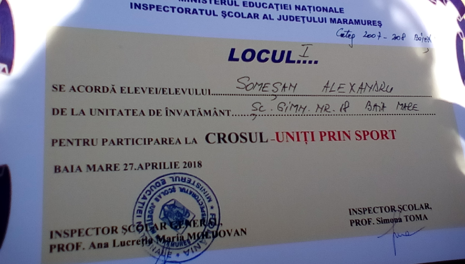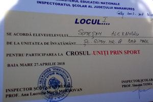 Peste 500 de copii din mai multe localități maramureșene s-au întrecut la crosul ”Uniți pentru sport”. ”Evenimentul este organizat în cinstea Centenarului Marii Uniri și participă elevi din tot județul, de la clasa I până la clasa a XII-a. Cei 550 de copii au concurat la șase categorii de vârstă”, a detaliat Simona Toma, inspector școlar pentru Educație Fizică și Sport din cadrul Inspectoratului Școlar Județean Maramureș. Cei mai buni alergători au primit premii, diplome și cupe. Cum a fost cursa pentru elevii de-a V-a? ”Nu mi-a plăcut pentru că, deși ni s-a spus că va fi un regulament și că se va respecta, nu a fost chiar așa. Unii s-au împins” – s-a plâns un elev de la Școala ”Lucian Blaga” din Baia Mare, care însă a ținut să precizeze că și lui și colegilor săi le place sportul. Crosul s-a desfășurat în parcul Regina Maria din Baia Mare și a fost organizat de Inspectoratul Școlar Județean Maramureș, în colaborare cu Direcția Județeană pentru Sport și Tineret Maramureș.