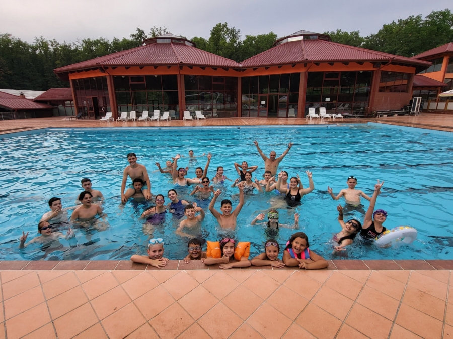 Pentru că încă este vacanță, tinerii sportivi se bucură și de distracție la piscină, jocuri și socializare.