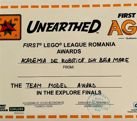 Academia de Robotică Baia Mare a obținut distincția Team Model Award în Finala Națională First Lego League Explore din București
