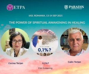”Suntem onorați să le urăm bun venit lui Călin Terțan și Corinei Terțan, creatorii remarcabilului film documentar «0,1%?», care va fi proiectat în seara de închidere a conferinței noastre. Prin lentilele lor, Călin și Corina Terțan surprind experiențe umane profunde și dimensiuni spirituale care ne invită să reflectăm asupra vieții, conexiunii și transformării. Filmul lor aduce o perspectivă inspirată care rezonează profund cu tema întâlnirii noastre – The Power of Spiritual Awakening in Healing. Este un privilegiu să-i avem alături de noi, să împărtășim nu doar munca lor, ci și viziunea și dedicarea din spatele acestui documentar unic”, notează European Transpersonal Psychology Association într-o postare de pe pagina de Facebook. (T.S.)