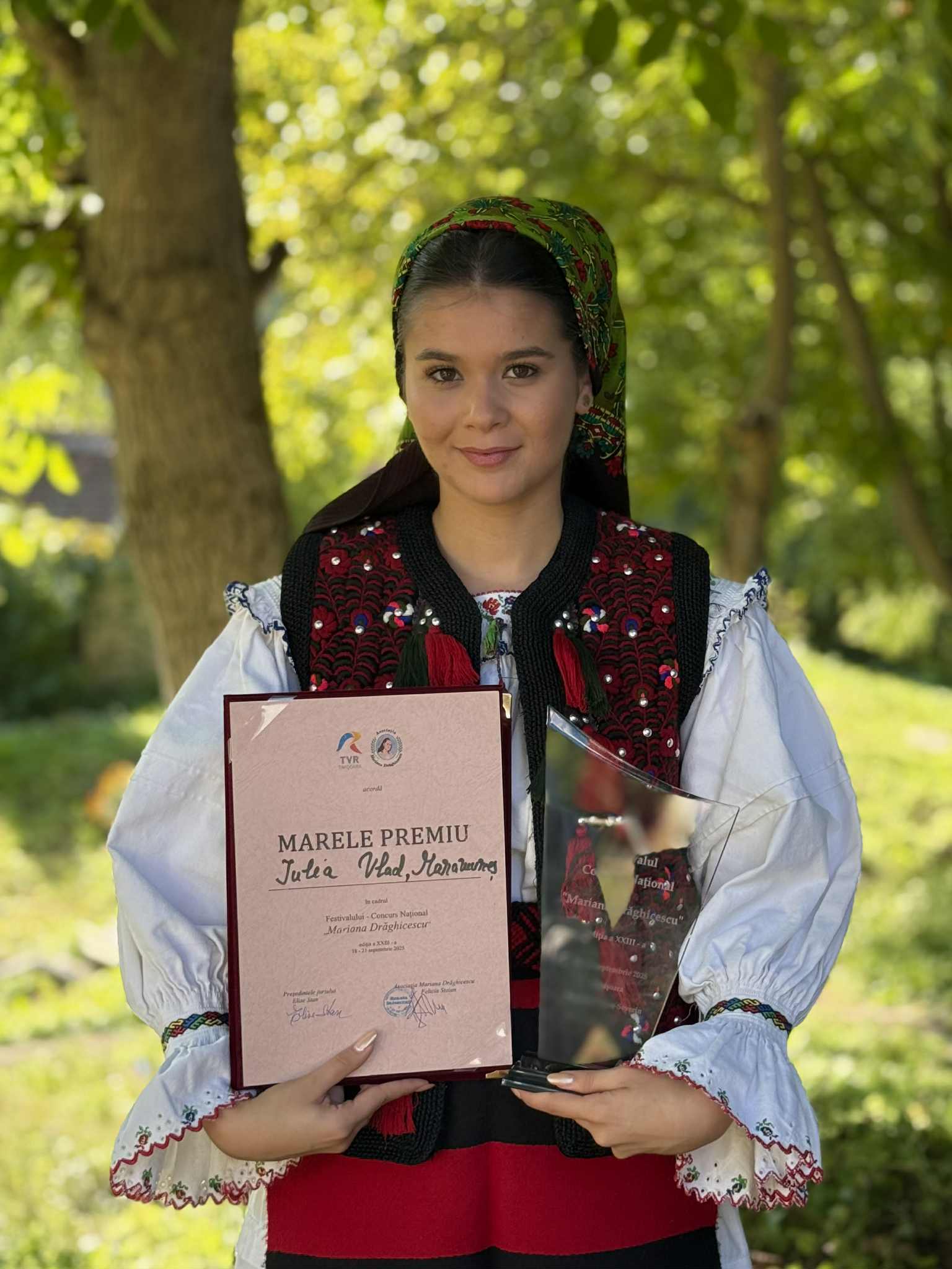 În cadrul concursului, Iulia – pregătită de prof. Mihaela Bob-Zăiceanu – a ales să aducă în fața spectatorilor un fragment din doina regretatei Titiana Mihali – „Mândru-și cântă păsările”, dar și piesa „Cât îi Gutâiu de-nalt” din repertoriul lui Viorel Costin. Emoția transmisă, vocea caldă și autenticitatea cu care a redat frumusețea folclorului maramureșean i-au adus tinerei artiste Marele Premiu al Festivalului.