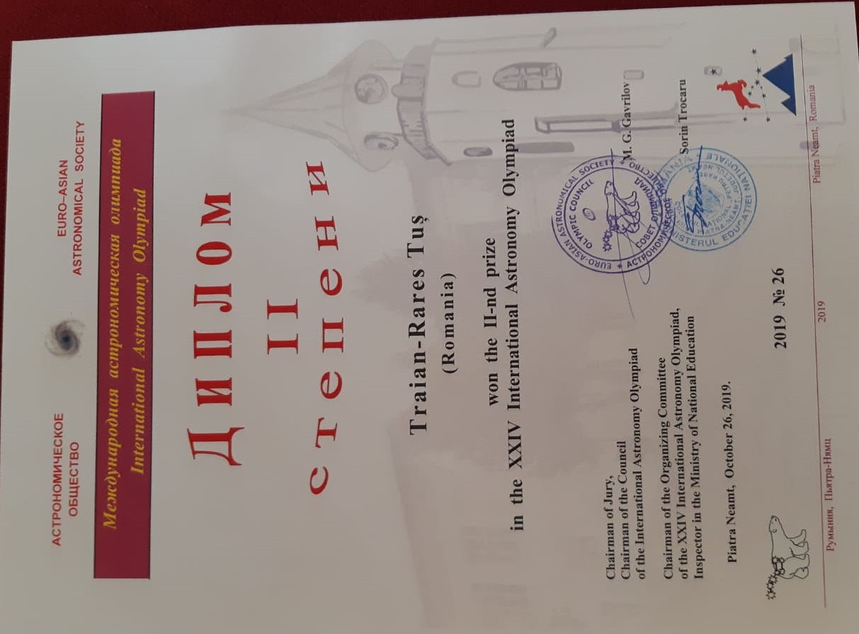 Juniorul Traian Tuș, medalie de argint la Olimpiada Internațională de Astronomie a seniorilor
