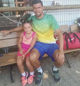 Sara Nicole Sitar practică tenisul de câmp – fiind pregătită de prof Gheorghe Călin (vezi foto dreapta) – și e considerată o mare speranță a tenisului românesc. Ea va împlini opt ani abia în luna decembrie. În recentul weeked, ea s-a impus în concursul Cupa „Tenis Prim” de la București, victorie cu care și-a asigurat calificarea la Turneul Campionilor. Organizat de Tenis 10 Verde MPG, turneul va avea loc în capitală, spre sfârșitul sezonului.