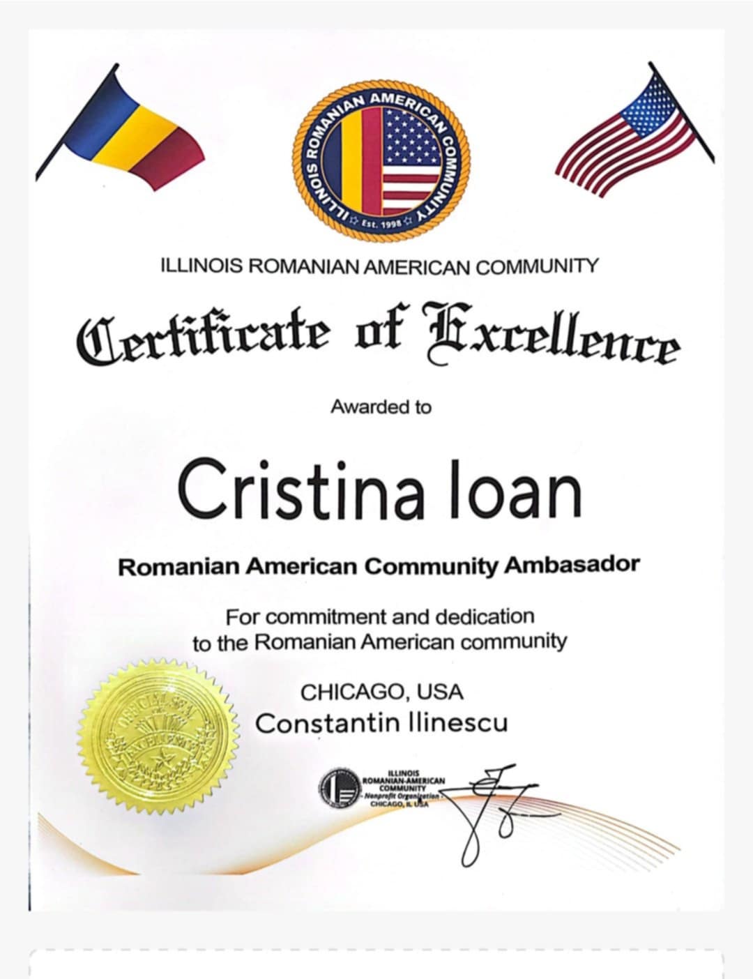 În cadrul evenimentului organizat de Sfântul Nicolae, la Chicago, Cristinei Ioan i s-a acordat distincția de ambasador al culturii românești. Totodată, ea a fost invitată să cânte și la recepția organizată de Consulatul României la Chicago, cu ocazia Zilei Naționale a României.