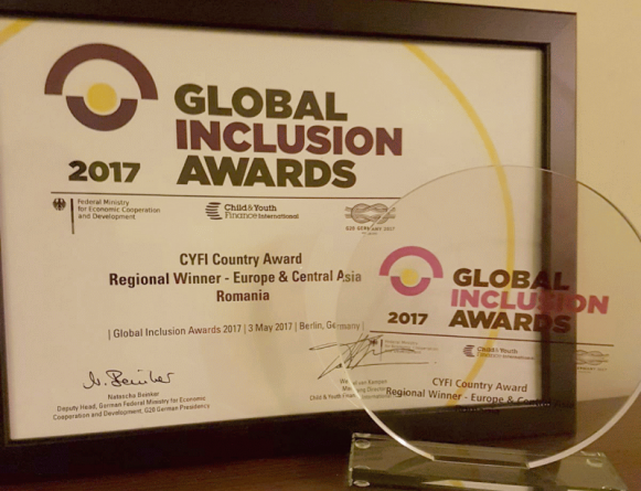 La Berlin, în cadrul „Global Inclusion Awards 2017”, România a câştigat marele premiu pentru proiecte de educație financiară, la categoria „Child and Youth Finance International (CYFI) Country Award. A fost unul dintre cele cinci premii ce se acordă pentru fiecare regiune din lume și a recompensat proiectele derulate, la nivel naţional, în 2016.