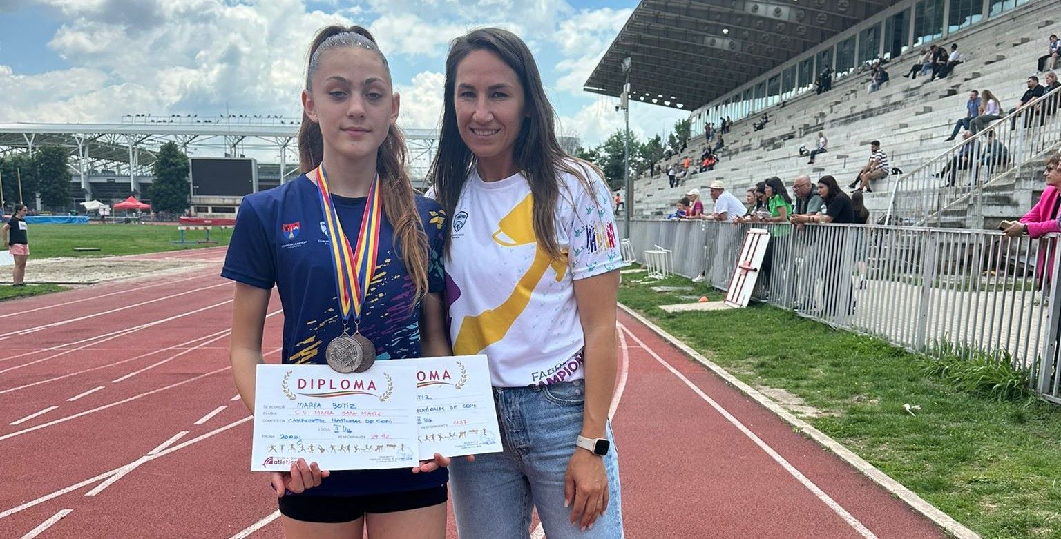 Cele două fete sunt pregătite de antrenoarea Silvia Marta (foto jos, alături de Maria Botiz). „Am avut parte de două zile de concurs intense, pline de emoție și muncă. Am obținut performanțe remarcabile și sunt mândră de evoluția elevelor mele. Rezultatele de la București sunt o confirmare a muncii, perseverenței și talentului acestor fete. Gabriela și Maria reprezintă viitorul atletismului românesc și sunt un exemplu pentru toți copiii din comunitățile lor”, a arătat Silvia Marta. (T.S.)