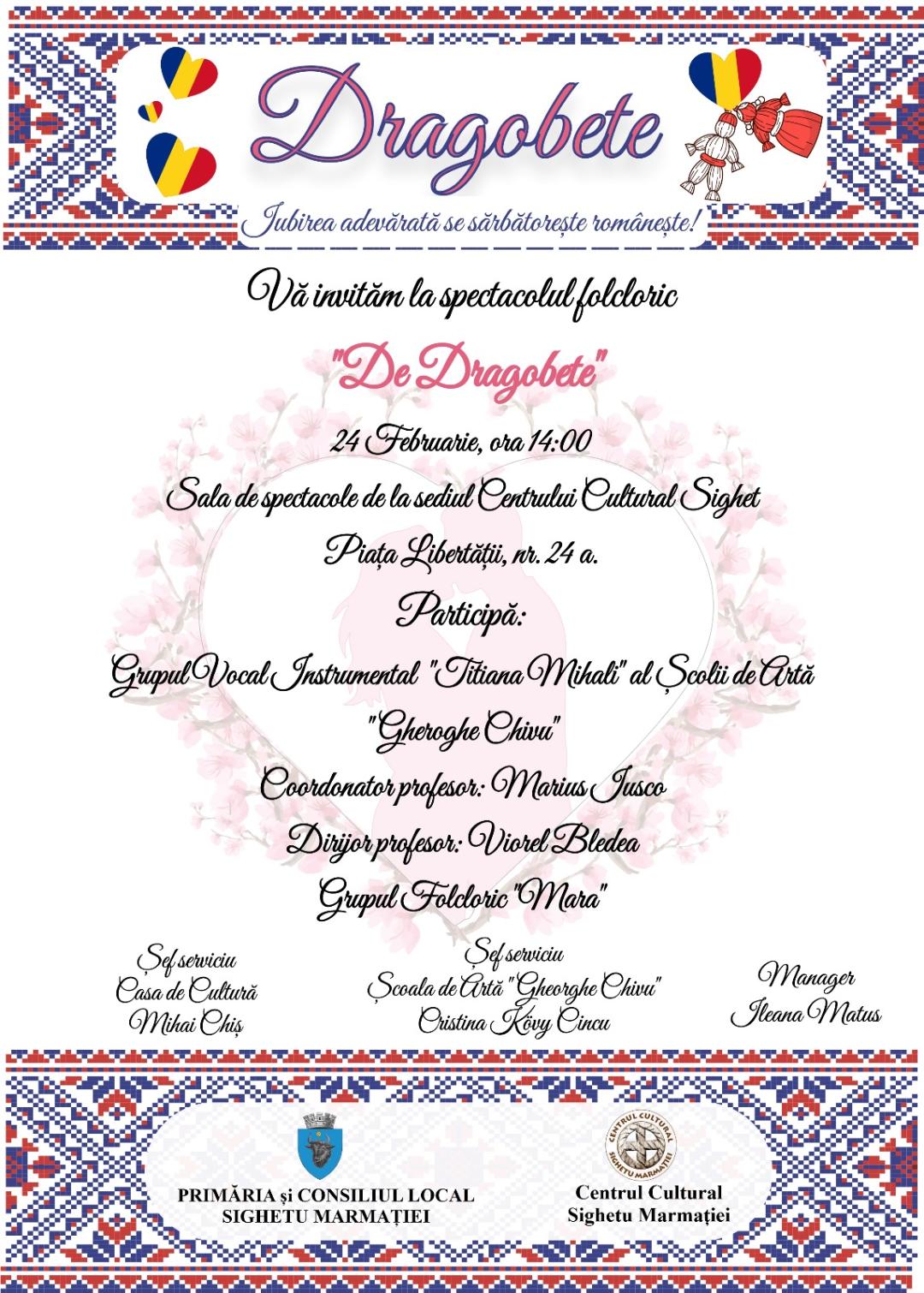 Mâine, 24 februarie, de la ora 14.00, Centrul Cultural din Sighetu Marmației va găzdui spectacolul folcloric „De Dragobete”.