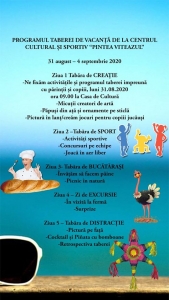 Copiii cu vârsta cuprinsă între 6 și 12 ani sunt așteptați să se înscrie la cea de-a doua ediție a taberei de vacanță de la Centrul Cultural și Sportiv Pintea Viteazul Cavnic. Aceasta se va desfășura în perioada 31 august – 4 septembrie 2020.