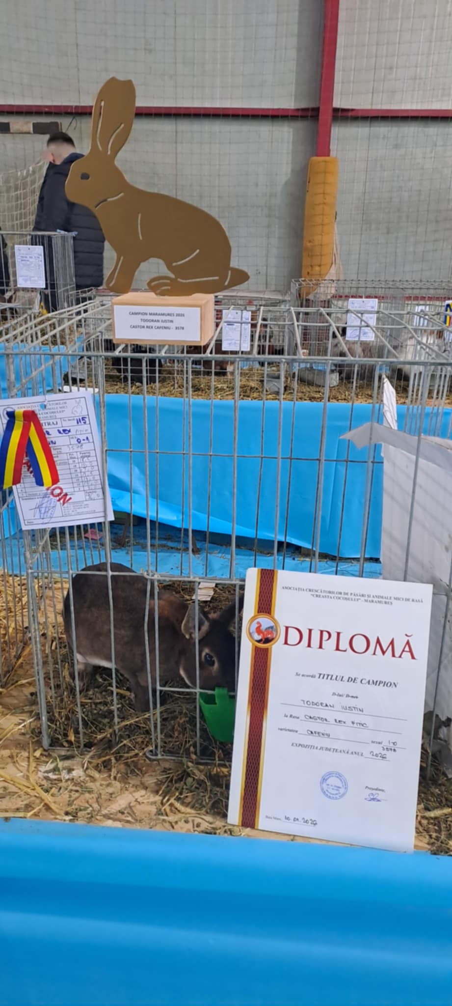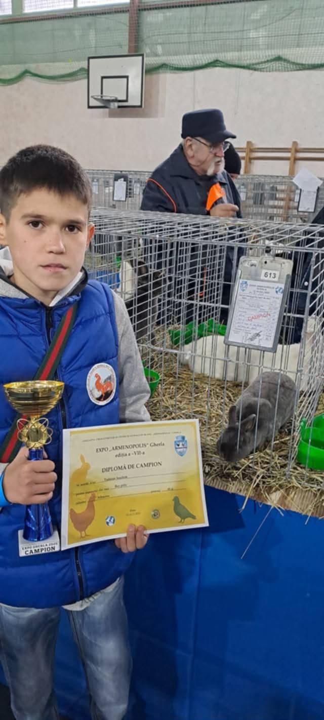 Munca lui a fost deja răsplătită la nivel competițional. Cu iepurii, Iustin a participat la două expoziții importante. Cea mai recentă a fost la Baia Mare, în perioada 9–11 ianuarie, unde a obținut titlul de campion cu o femelă Rex pitic castor. Cealaltă expoziție s-a desfășurat la Gherla, între 12 și 14 decembrie 2025, unde a primit din nou titlul de campion, de această dată cu o femelă Rex pitic albastru.