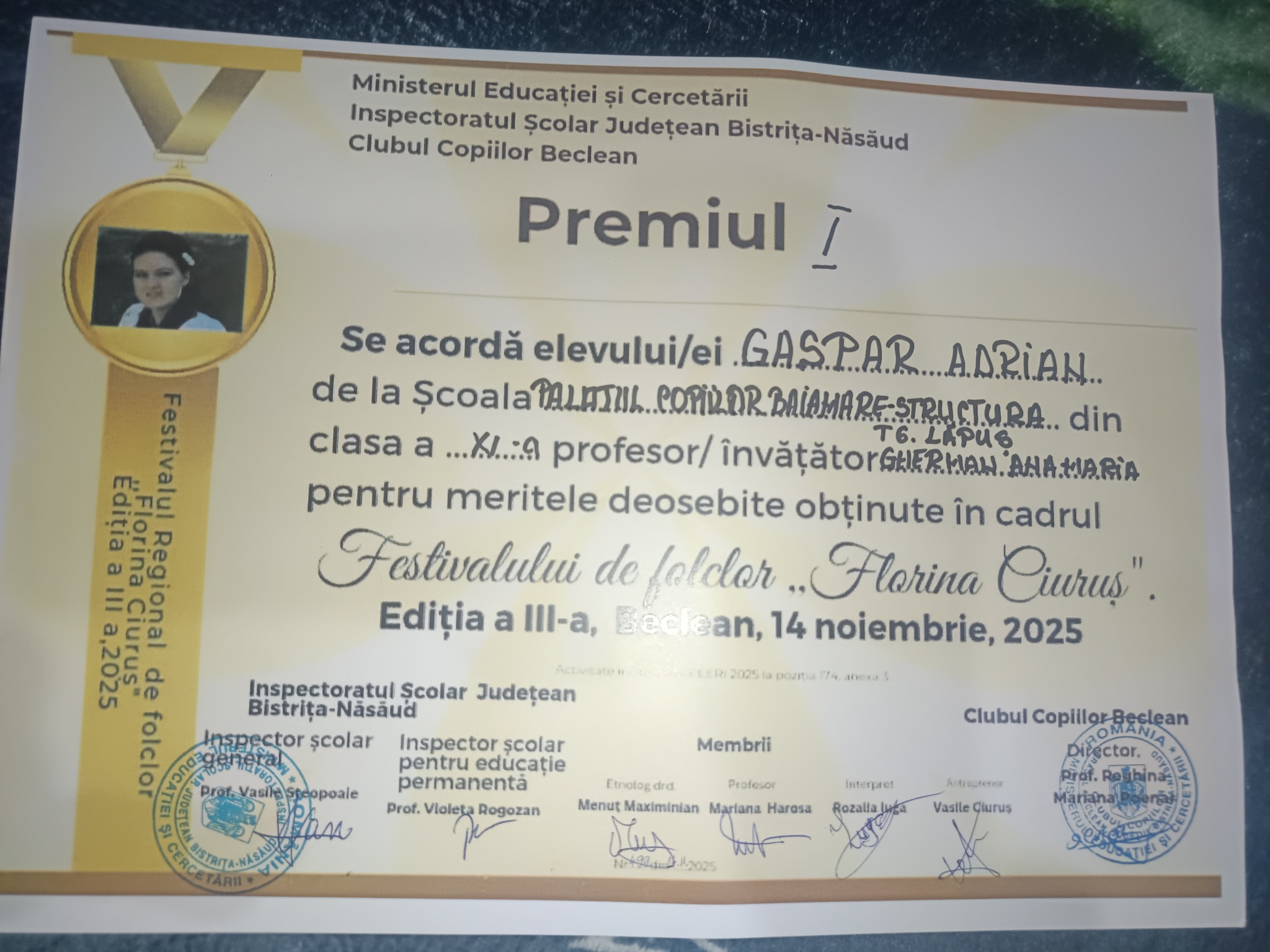 Maramureșeanul Adrian Gașpar, premiul I la Concursul „Florina Ciuruș” din Beclean