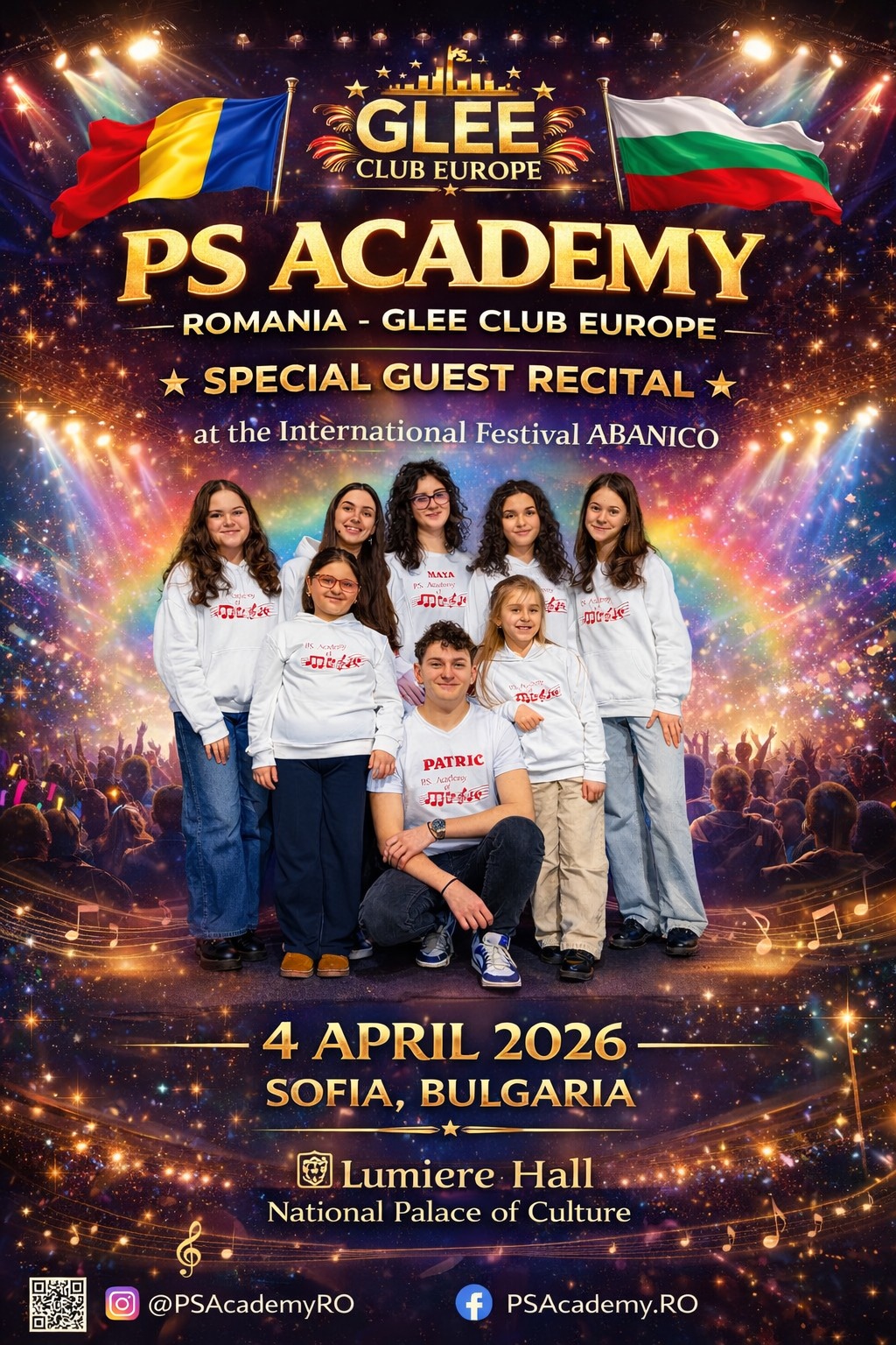 Tinerii artiști ai P.S. Academy Baia Mare vor reprezenta România pe scena unui important eveniment internațional. Școala băimăreană de muzică a fost invitată să susțină un recital special în cadrul festivalului International Festival Abanico, care va avea loc pe 4 aprilie, la Lumiere Hall din cadrul Palatului Național al Culturii din Sofia, Bulgaria.