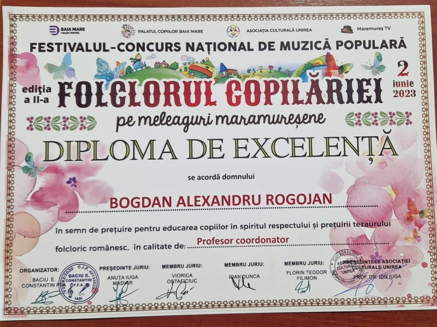 - TrofeulConcursul Național ” Folclorul Copilăriei”.