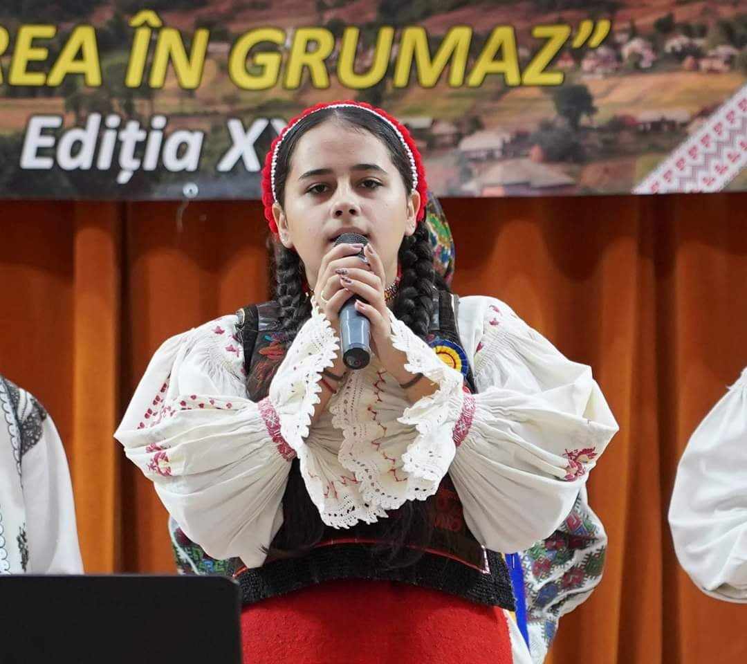 Profesorii care mă pregătesc de cinci ani sunt Adela Șanta și Marcel Both. Cânt hori cu noduri, doine, pricesne, colinde și muzică populară. Am opt cântece în repertoriul personal și acum pregătesc o colindă”, povestește Gabriela.