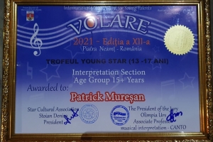 Talent: Patrick Mureșan din Mocira a obținut Trofeul Young Star la Festivalului Internațional „Volare” (FOTO)