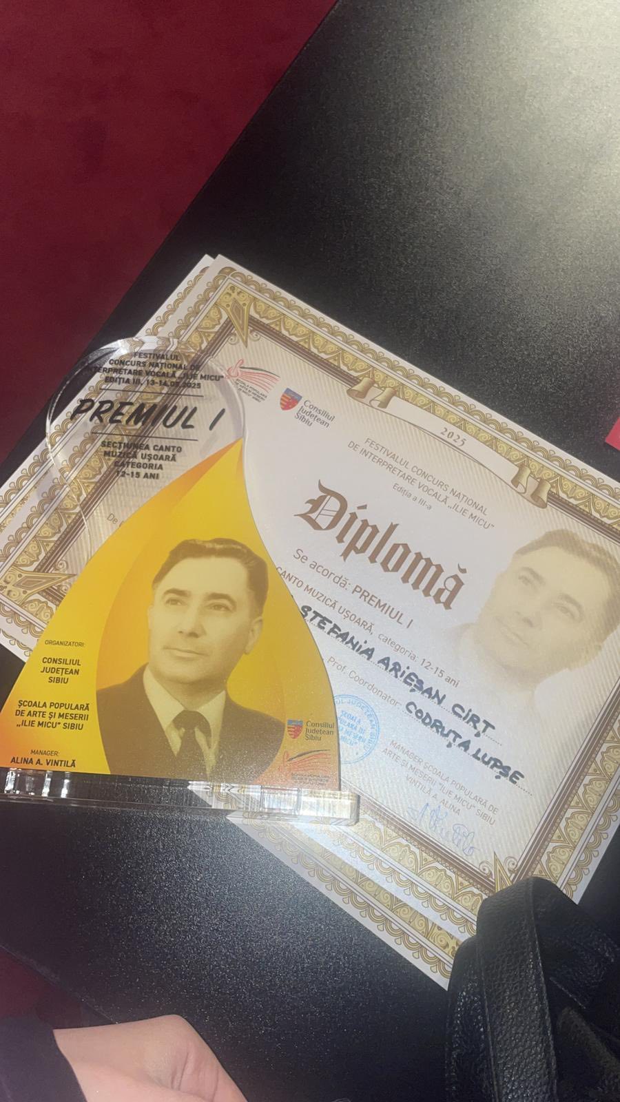 Talentata Ariana Arieșan a obținut Premiul I la Festivalul Național Concurs de Interpretare Vocală „Ilie Micu” din Sibiu