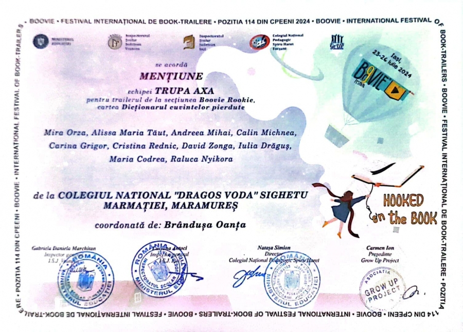 Trupa AxA de la Colegiul „Dragoș Vodă” Sighetu Marmației, premiată la Festivalul Internațional de Book-trailere BOOVIE